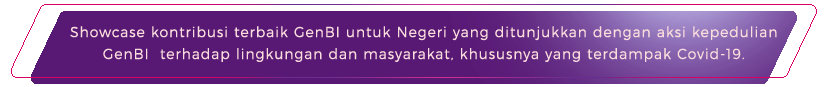 Showcase kontribusi terbaik GenBI untuk Negeri yang ditunjukkan dengan aksi kepedulian GenBI terhadap lingkungan dan masyarakat, khususnya yang terdampak Covid-19.